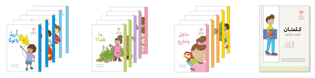 مجموعة لِتعليمِ القراءةِ للصِّغار، مُتوسِّطُ عدد الكلماتِ في الصفحةِ كلمتان، ومتوسط عدد الكلماتِ في القصة أربع عشرة إلى عشرين كلمة.