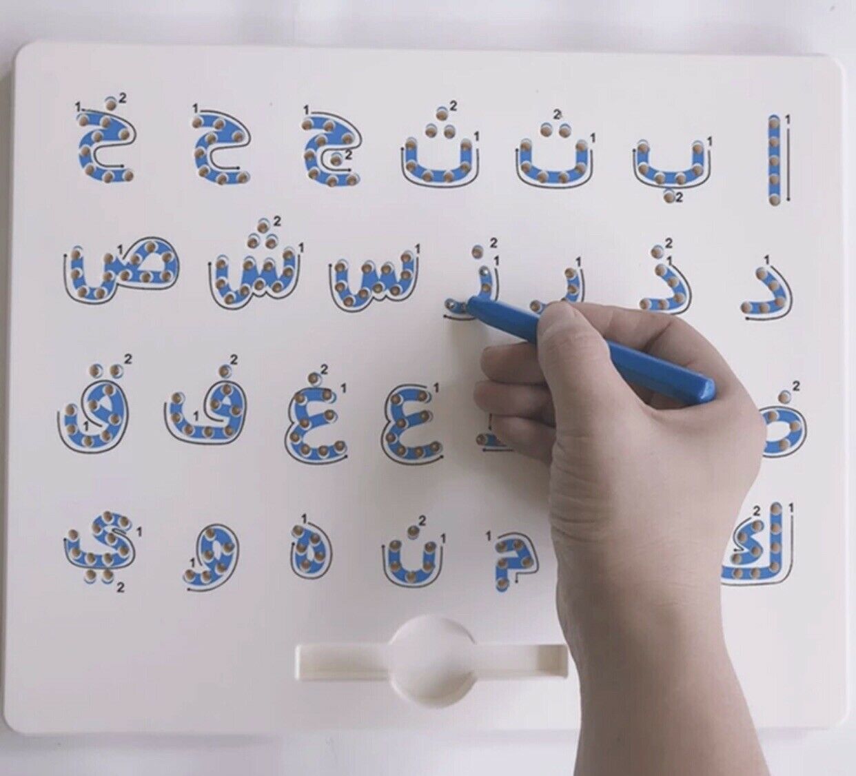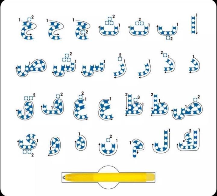 لوحة تعليمية لمسكة القلم وكتابة الحرف باللغه العربية