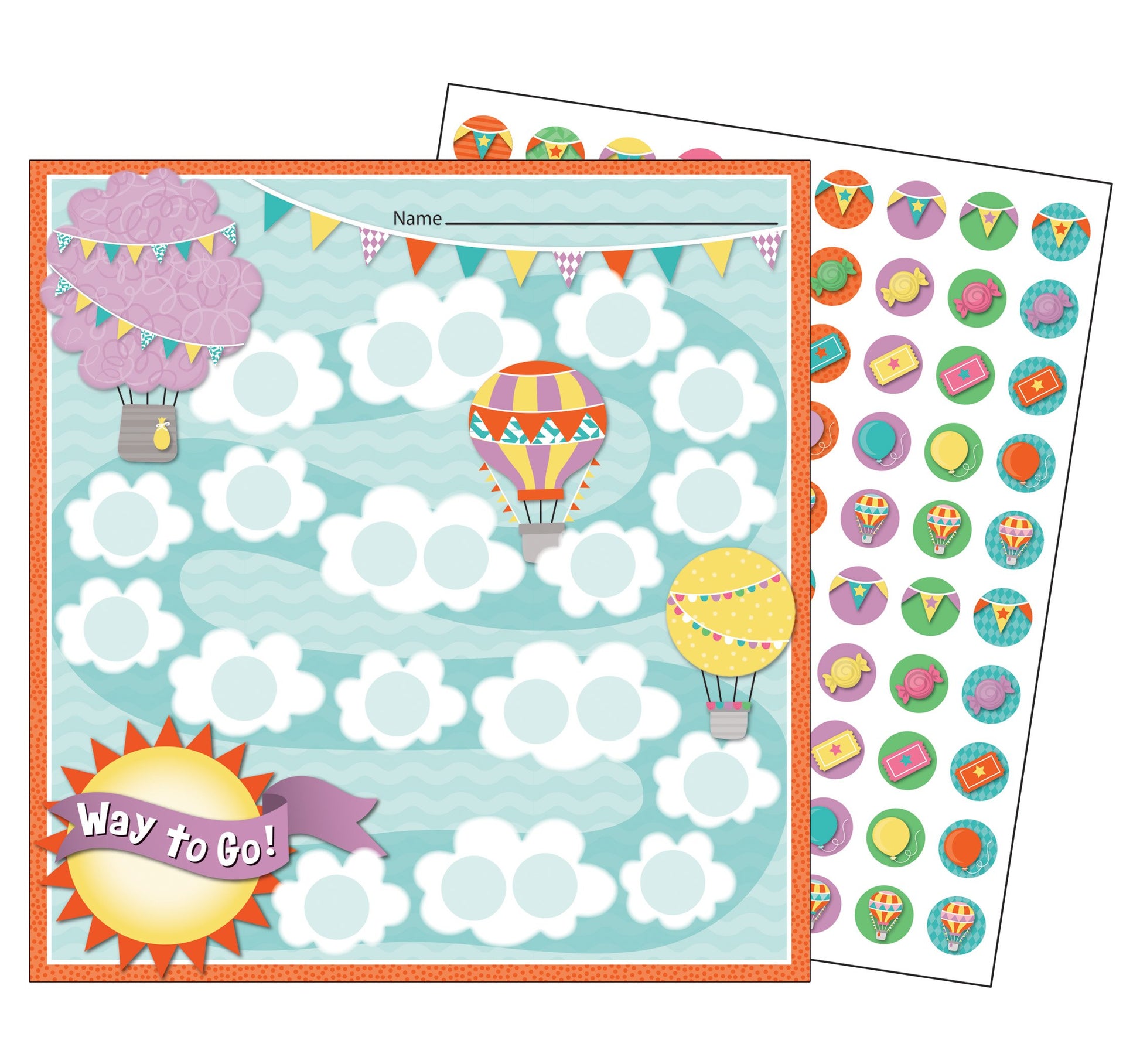 Each of the 30 mini incentive charts measures 4.75" x 5" and features hot air balloons. This set includes 630 coordinating chart seals-each designed with one of the following playful accents: banner, taffy, ticket, and balloon. --Mini incentive charts provide an interactive way to keep students involved in setting goals and tracking progress.